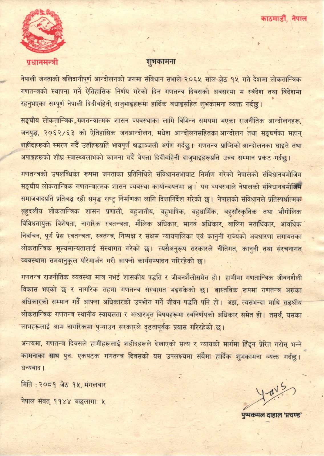२०८१ असार २८ गते संसदमा अध्यक्ष प्रचण्ड